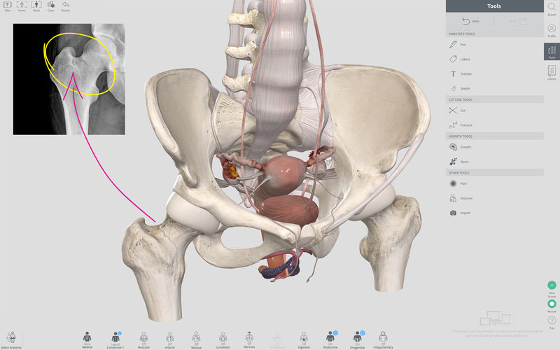 The world’s best-selling and most complete 3D anatomy models ever, not just an atlas but a sharing platform with unprecedented collaboration and learning tools. Female pelvis & urogenital system now added, with full female model to follow in 2018. Apple Design Award Winner 2016.